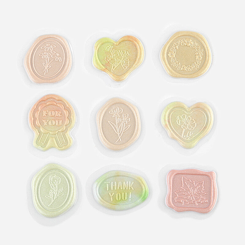 Each set contains 2 of each design (9 designs per set) for a total of 18 wax seals per set.