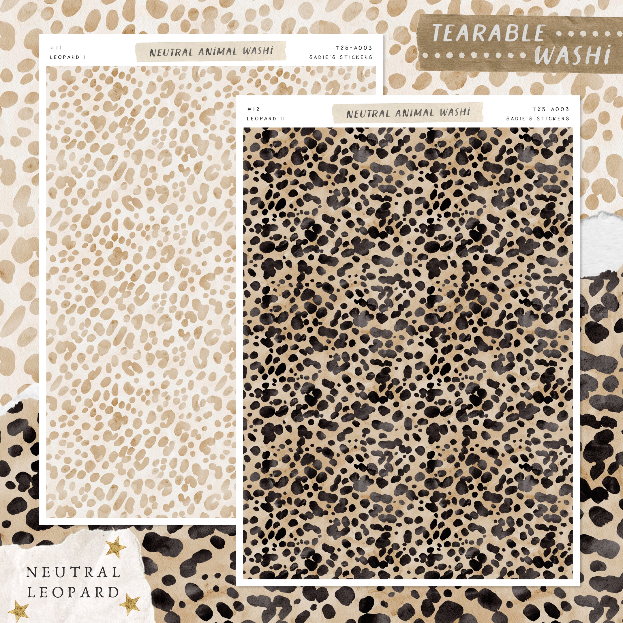 LEOPARD Neutral Animal Print • Tearable Washi Page