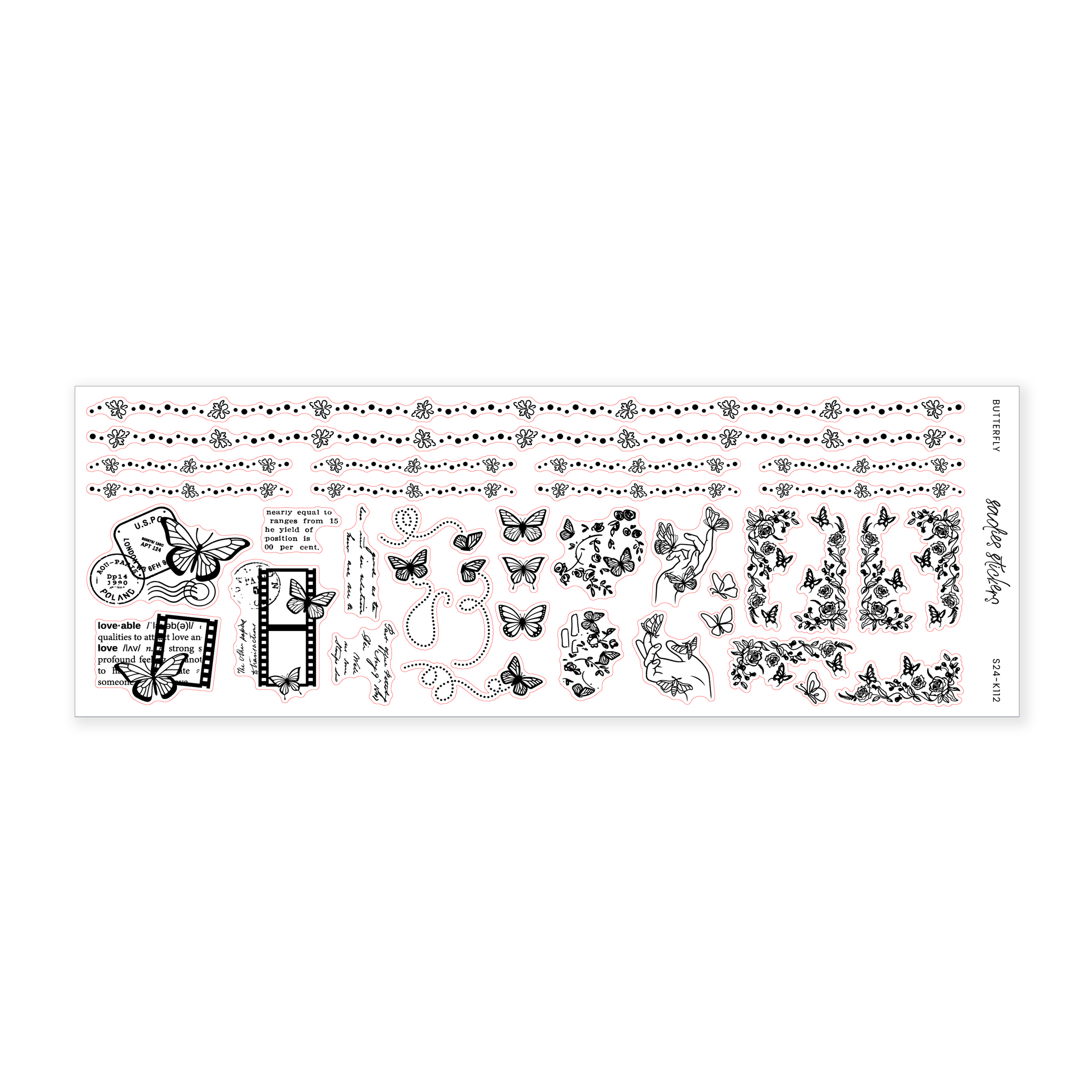 This sticker sheet measures 2.5 inches by 7 inches. All stickers are printed on our transparent matte paper.