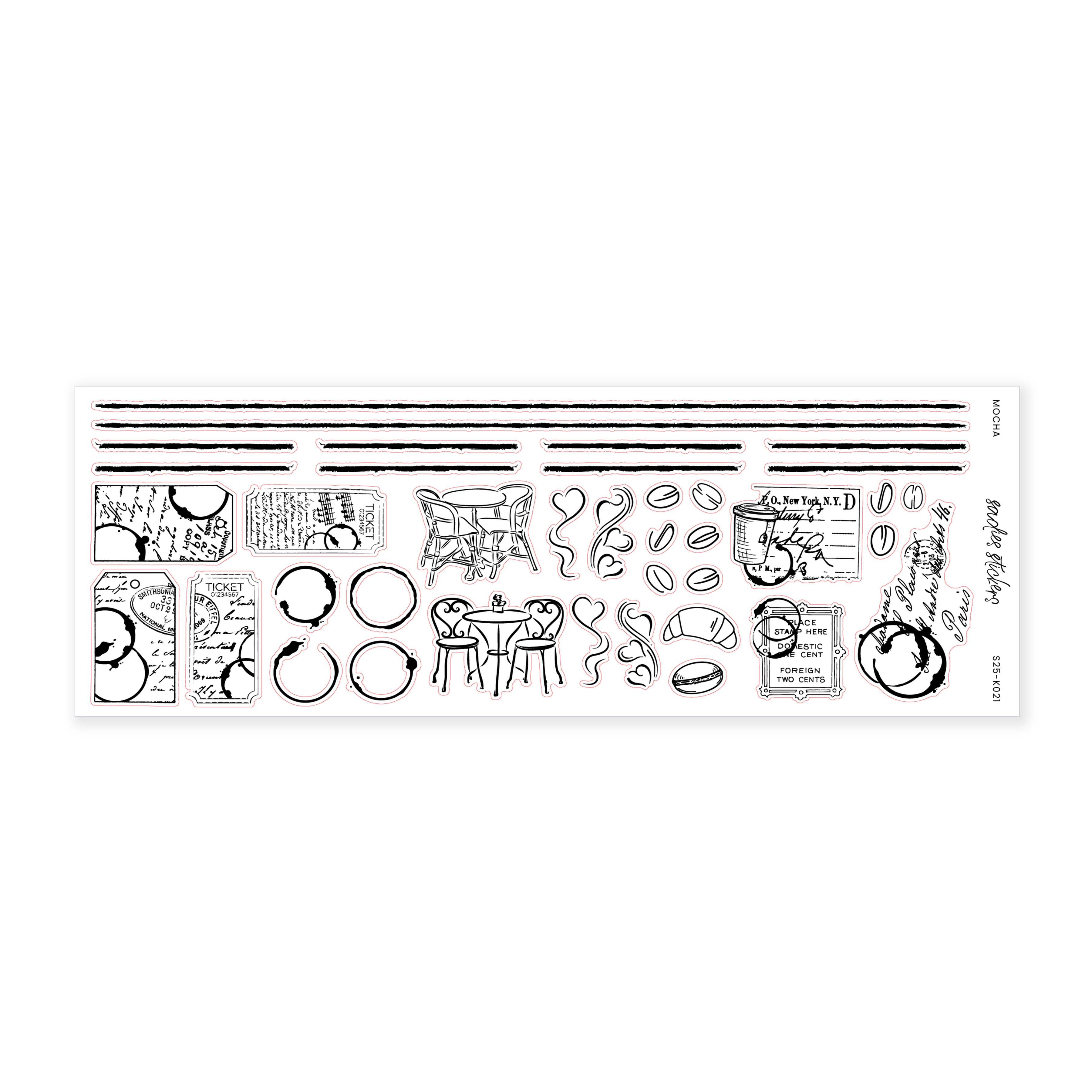 This sticker sheet measures 2.5 inches by 7 inches. All stickers are printed on our transparent matte paper.