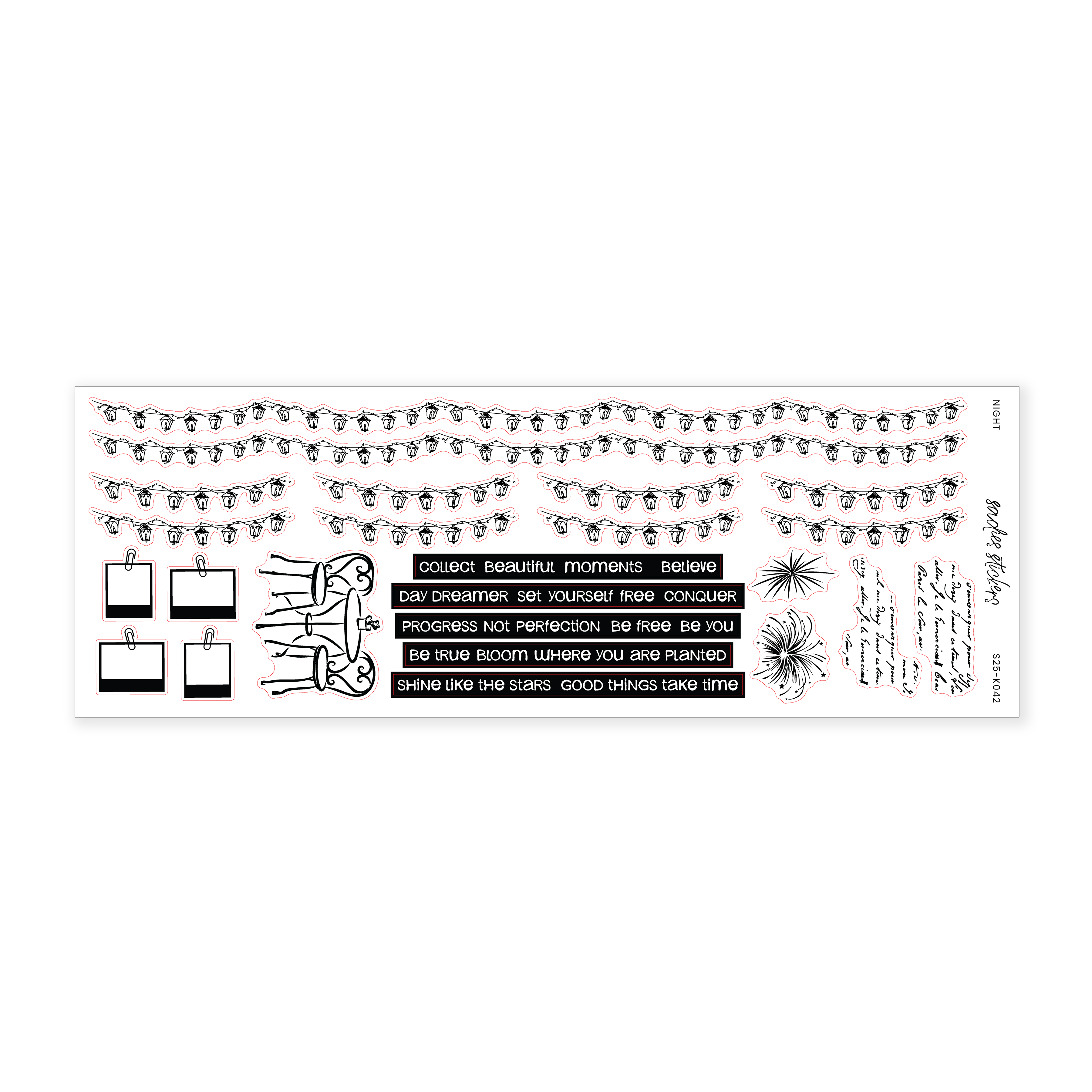 This sticker sheet measures 2.5 inches by 7 inches. All stickers are printed on our transparent matte paper.