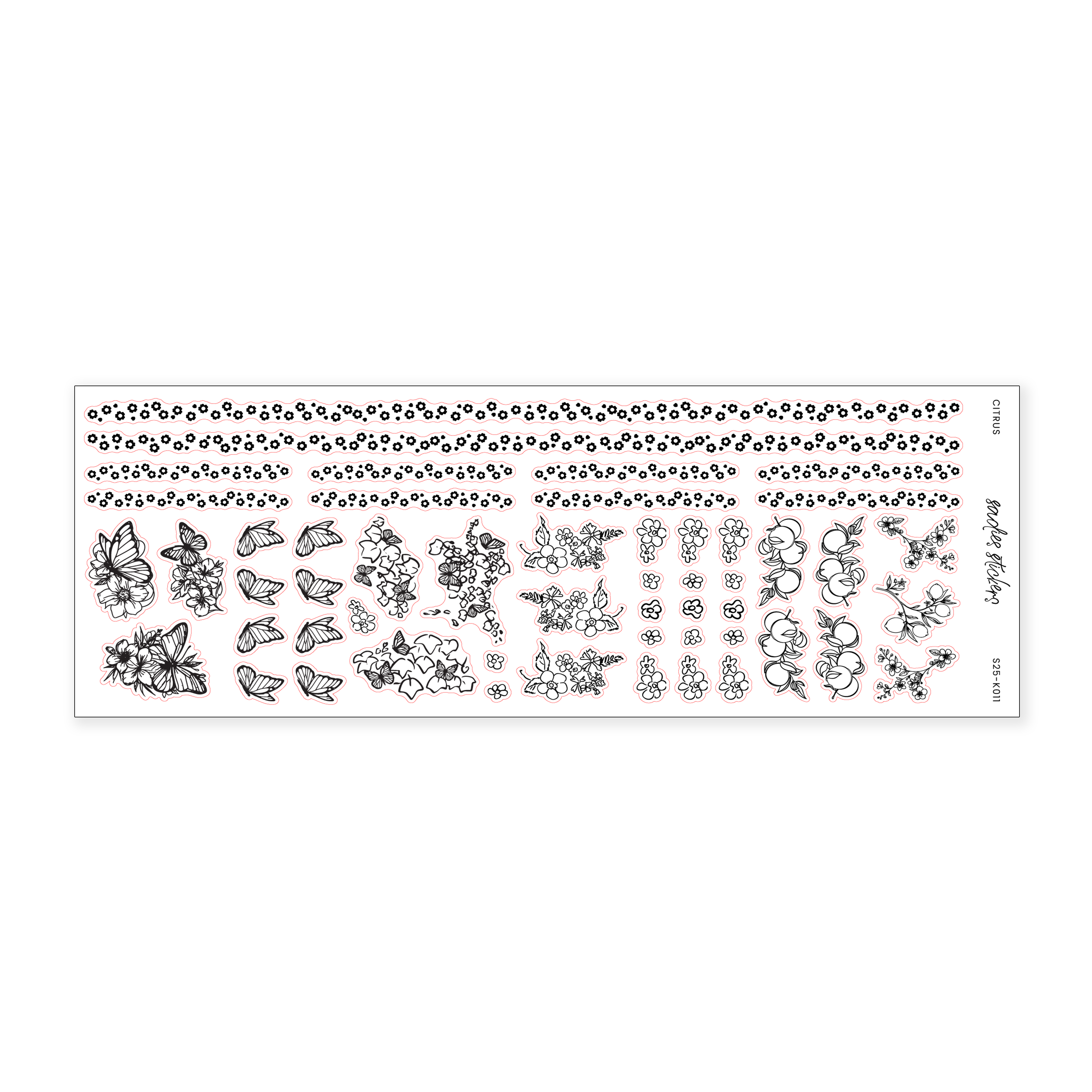This sticker sheet measures 2.5 inches by 7 inches. All stickers are printed on our transparent matte paper.