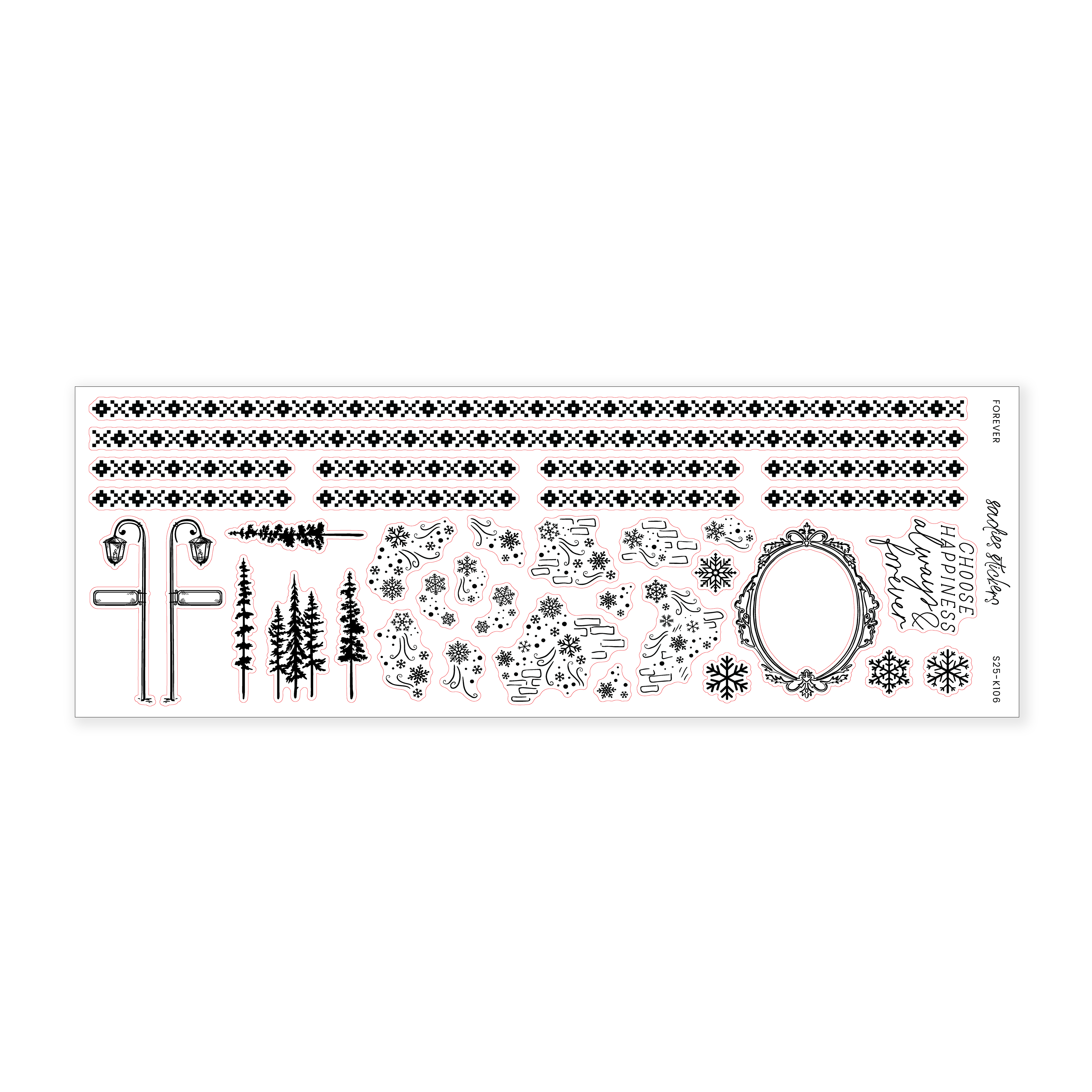 This sticker sheet measures 2.5 inches by 7 inches. All stickers are printed on our transparent matte paper.