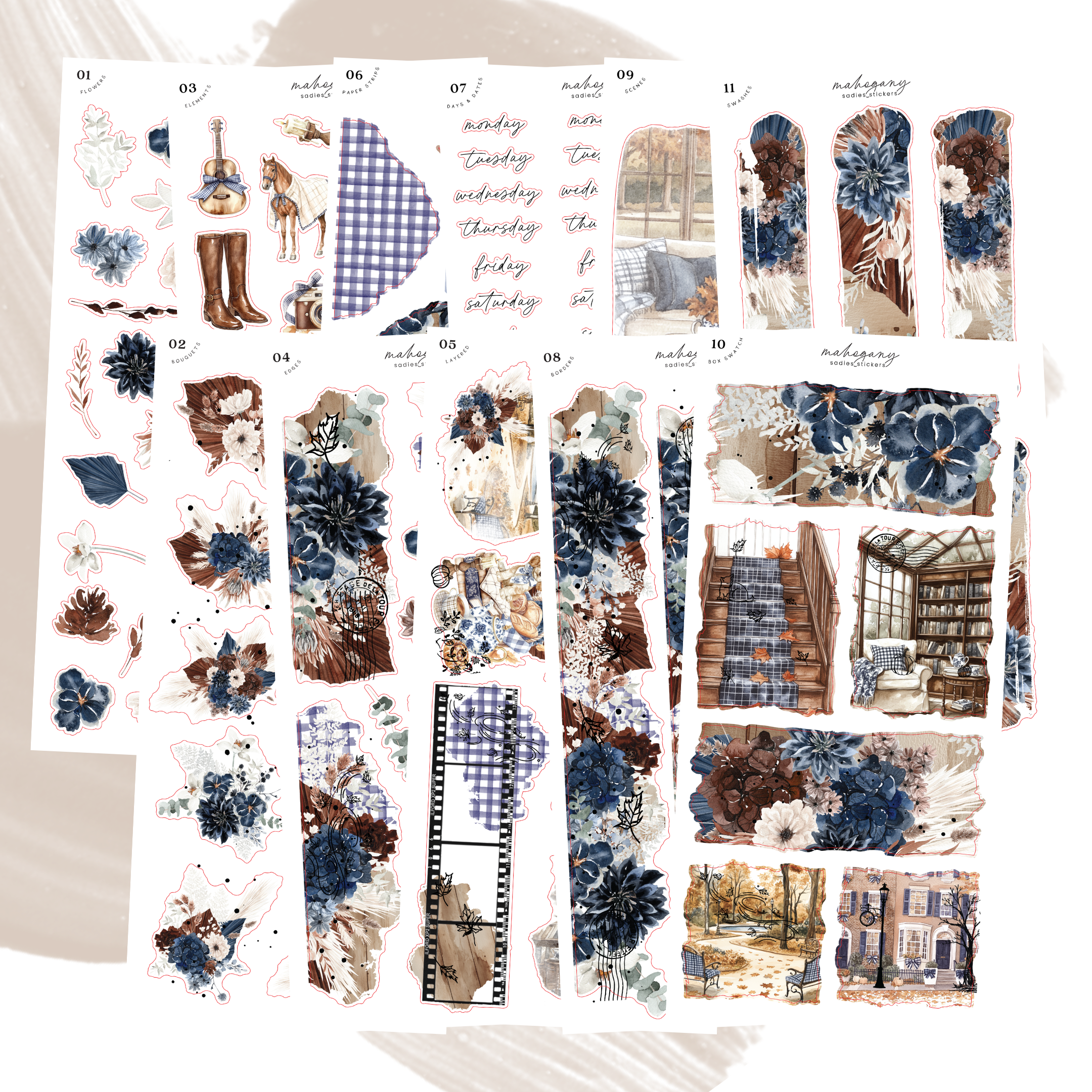 Sheets 2, 4, 5, 8, and 10 are foiled in rose gold.