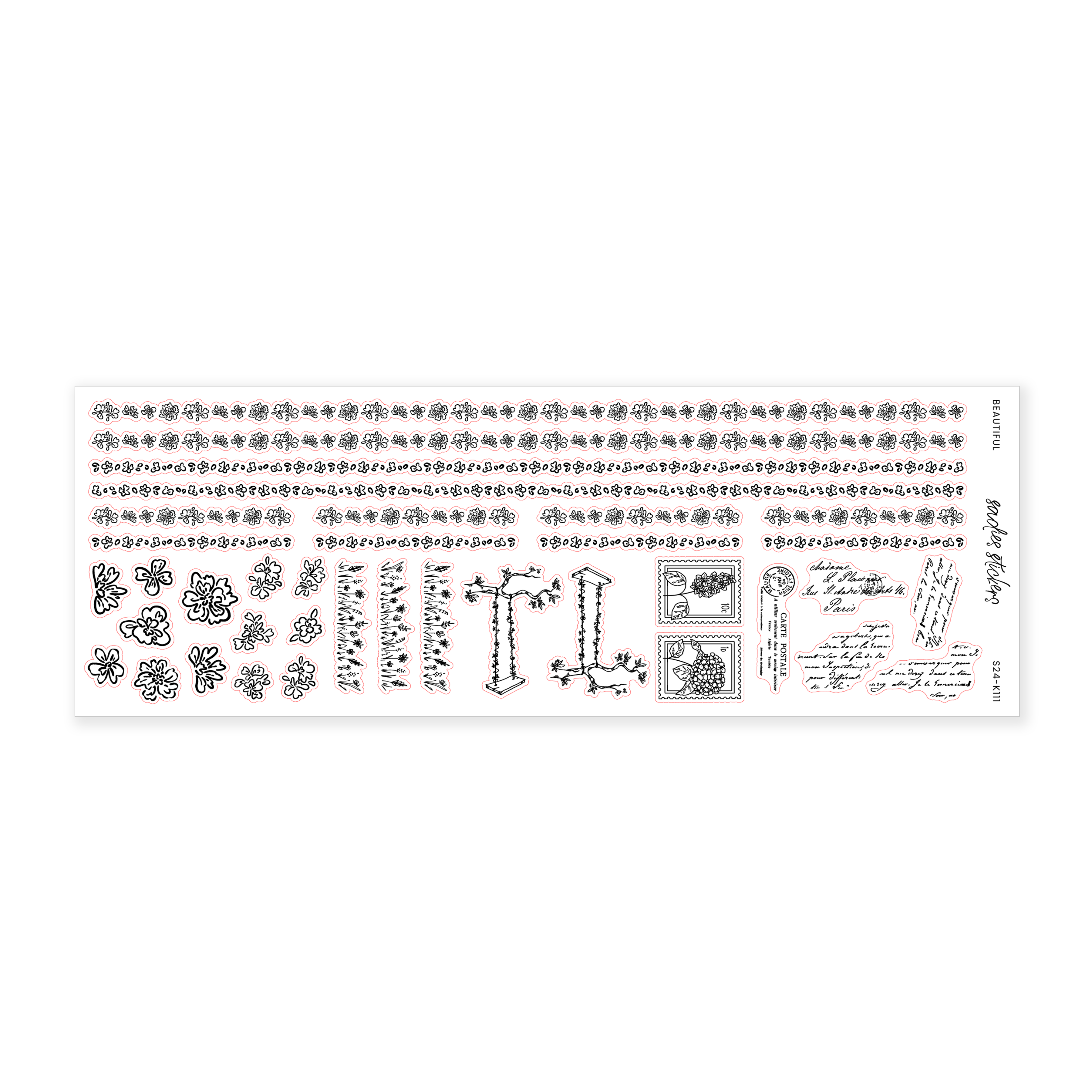 This sticker sheet measures 2.5 inches by 7 inches. All stickers are printed on our transparent matte paper.